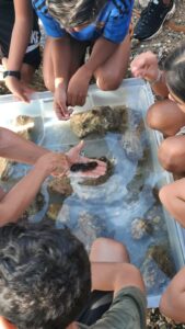 Equipés de bathyscopes et de plaquettes immergeables pour prendre des notes sur les observations in situ, vous pourrez découvrir, les pieds dans l’eau, la richesse des petits fonds côtiers et les premières notions de classification des organismes marins, ainsi qu’une réflexion sur leurs habitats très variés. Un constat évident que la vie est partout quand on sait où regarder. Un apprentissage à l’observation en milieu naturel dans le respect de la faune et la flore marine.